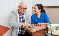 Physiotherapist and occupational therapist conduct professional assessment to frail elders and design individual and group training programmes, to improve their mobility and self-care ability.