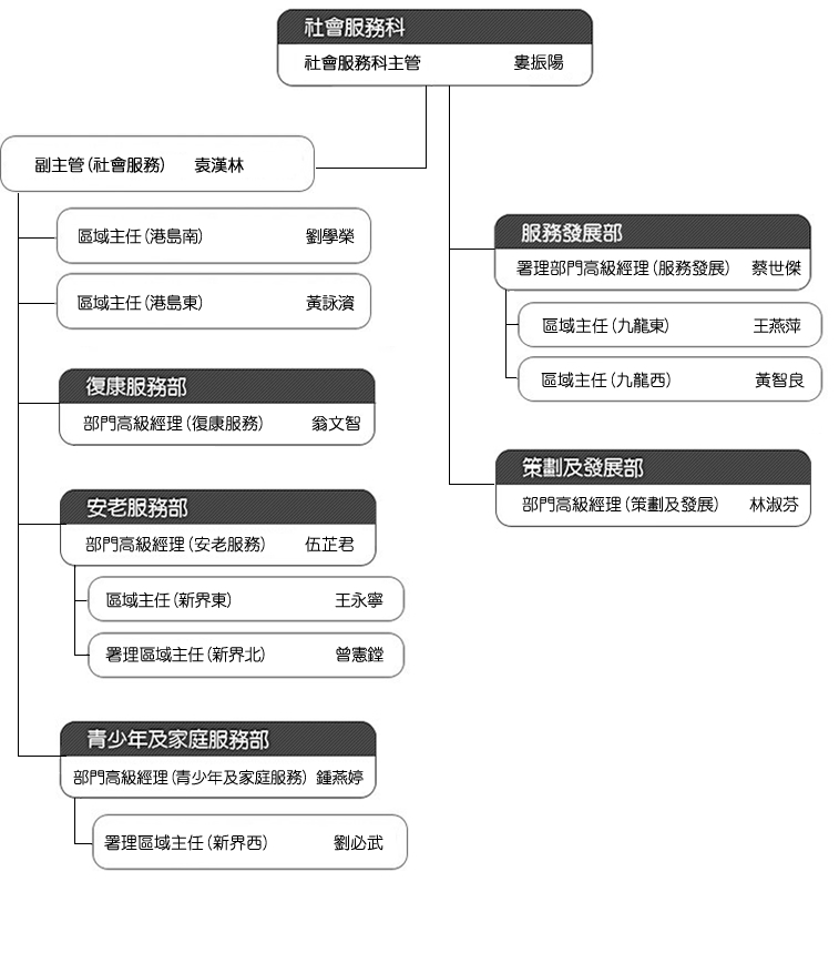 截至二○二五年三月,社會服務科按編制(包括行政總部及服務單位)共有員工7,146名,其中包括專業社工1,262名,護士709名及輔助醫療專業人員330名。