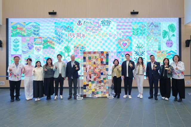 啟動禮當日亦展出一座為慶祝本院155周年而創作的大型藝術裝置。作品原料來自各區長者社區服務單位,收集了服務使用者捐贈的舊衣,經過消毒程序,再交由十多位長者義工精心挑選布料、設計圖案,拼砌出一幅高1.7米、闊0.9米,以「愛與祝福」為主題的巨型布碎裝置,不僅重現傳統工藝,更承載著歲月的回憶與溫情。參與義工均表示,製作過程別具意義,既勾起昔日回憶,亦把這項民間傳統技藝傳承至新一代。
